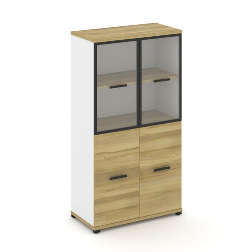 Шкаф средний широкий (2 средних фасада стекло лакобель чёрный в раме) SK.ST-2.4R black