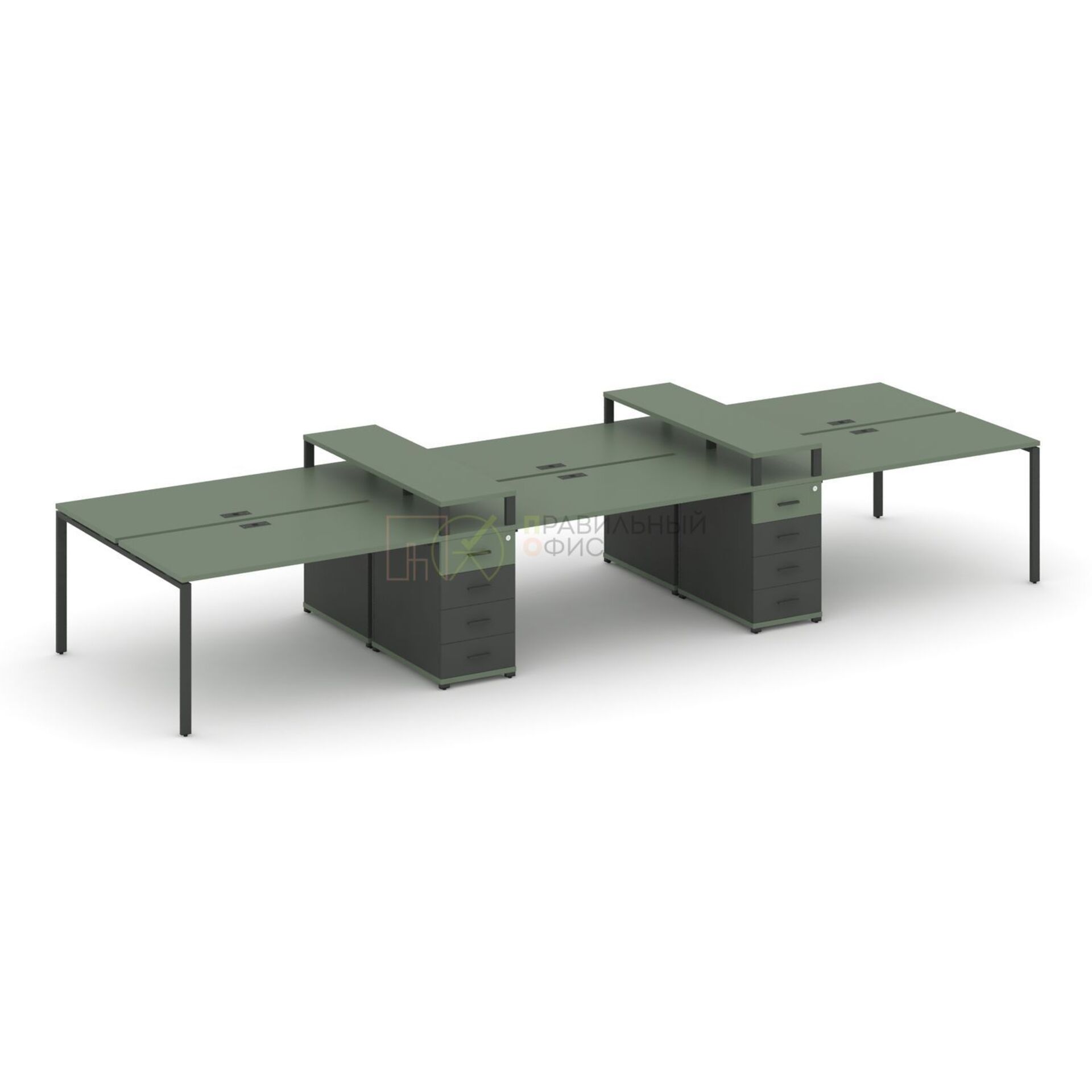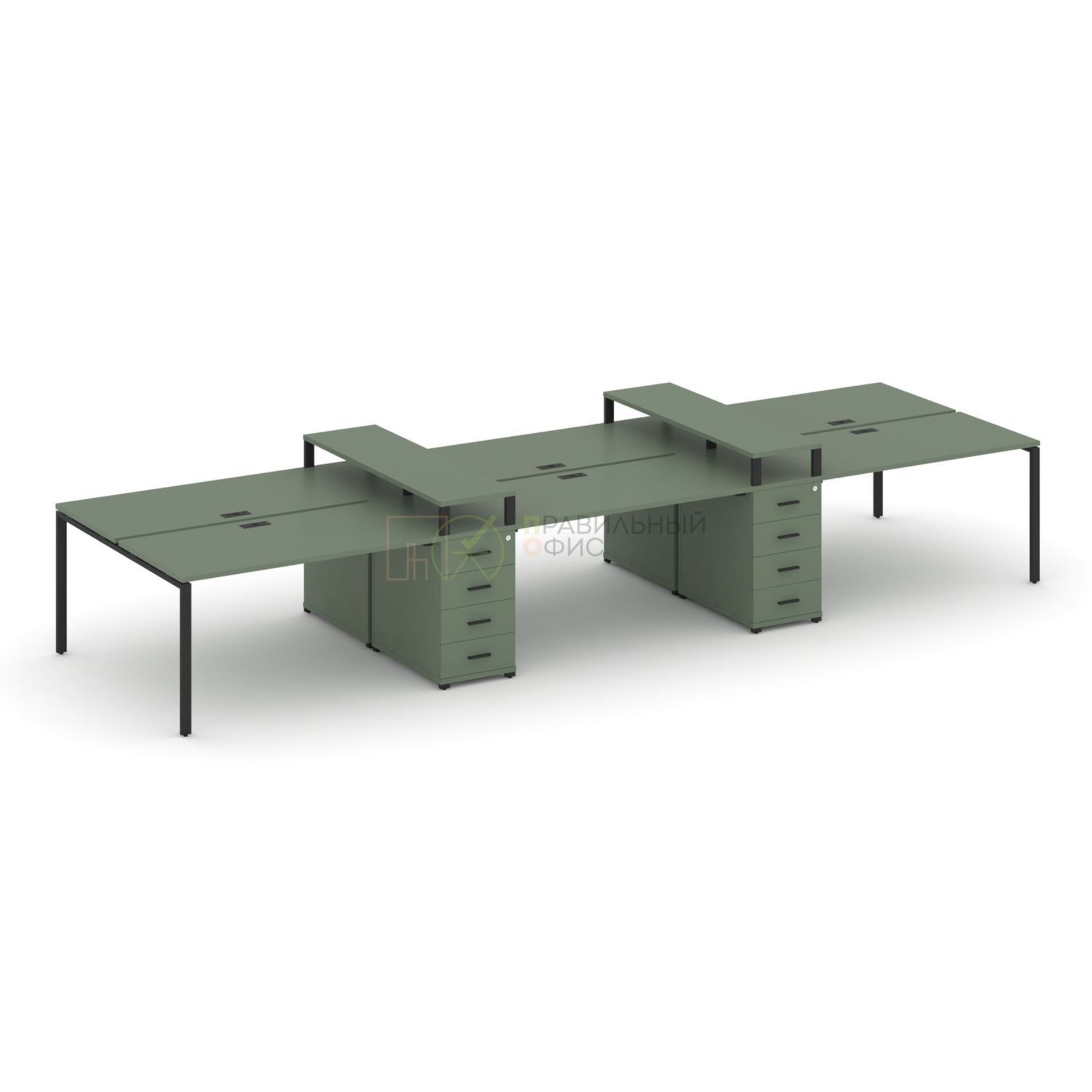 Рабочая станция на 6 мест с двумя опорными тумбами CN.DRS-467 A/B/W