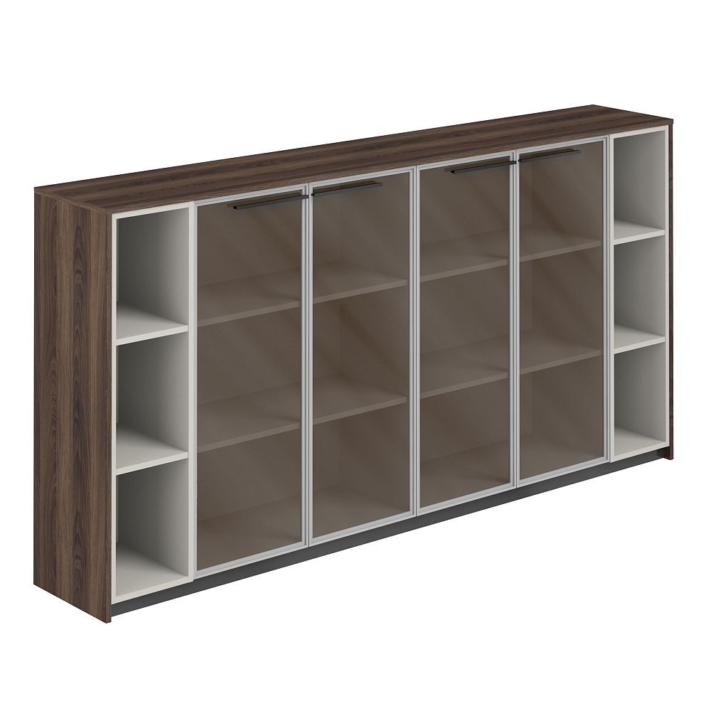 Шкаф средний с дверьми со стеклом в алюминиевой раме (2 шт) с 2-мя стеллажами RF.405.DA.CHBZ.PG