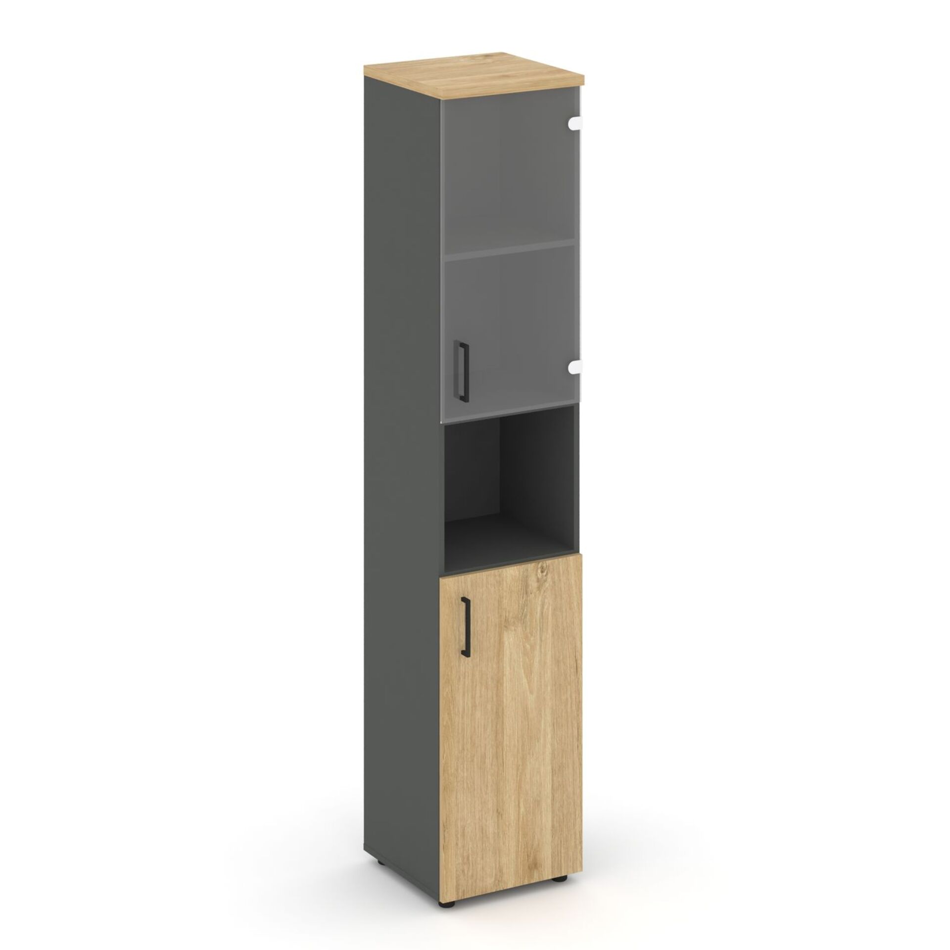 Шкаф высокий узкий правый (1 низкий фасад ЛДСП + 1 низкий фасад стекло прозрачное) SN.STU.E-105(R)
