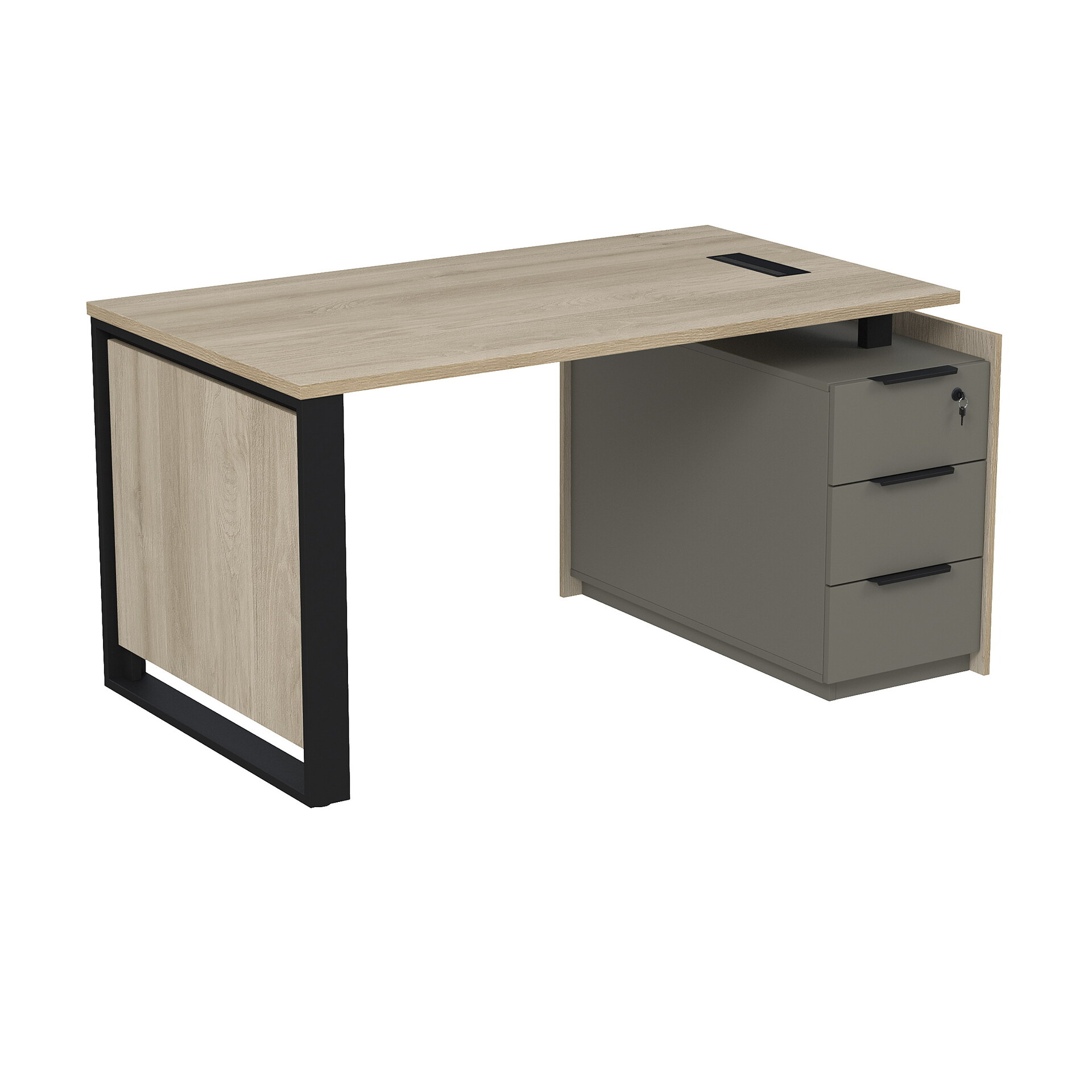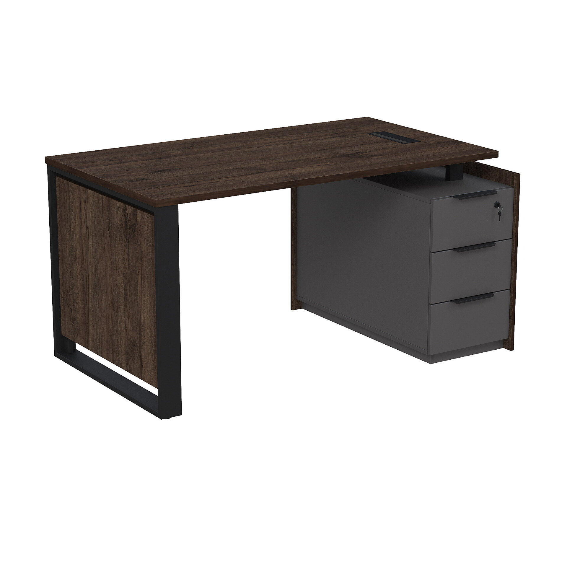 Стол рабочий с люч, на опорной угловой тумбе, с ящиками, с замком 15СОЛУ-ШД.1408