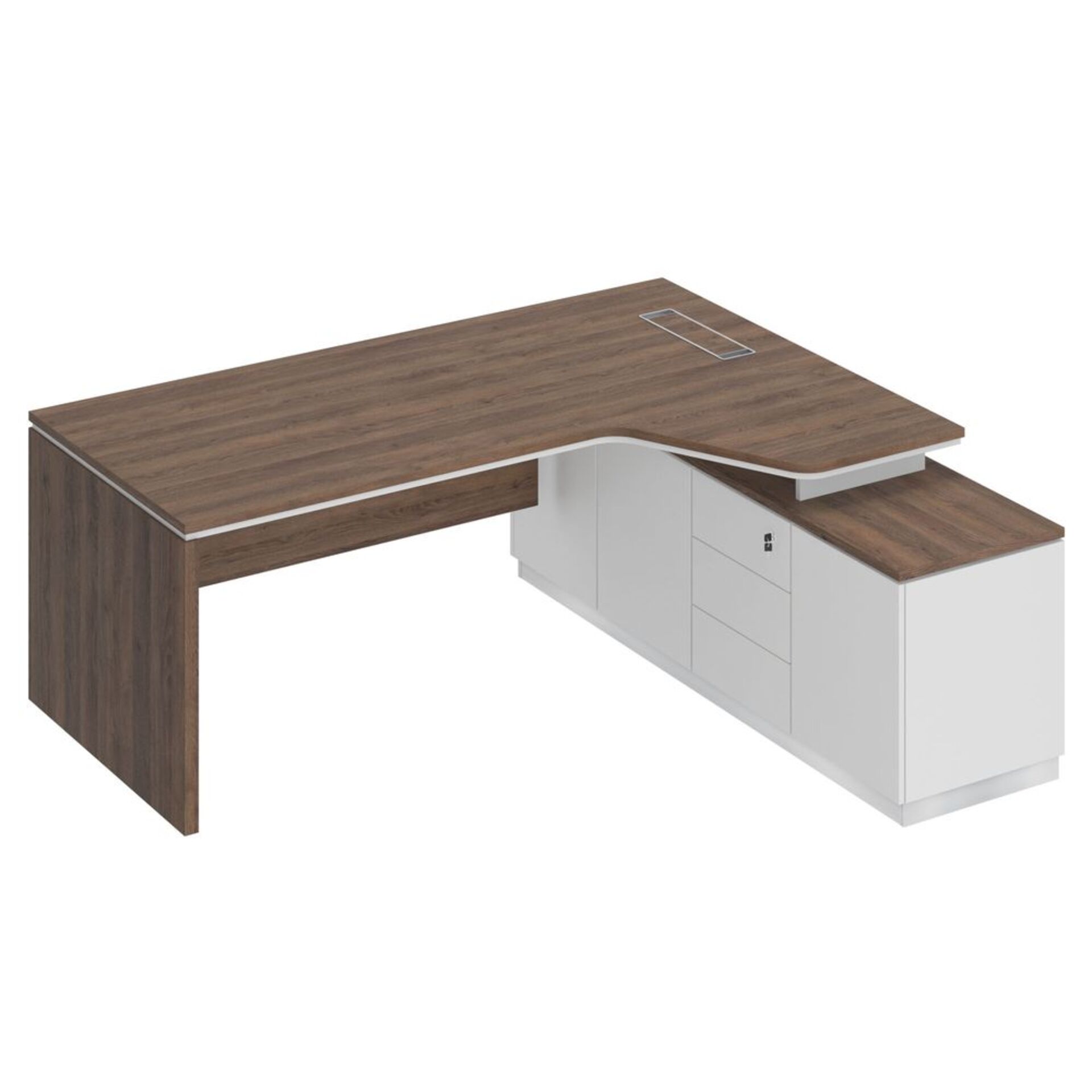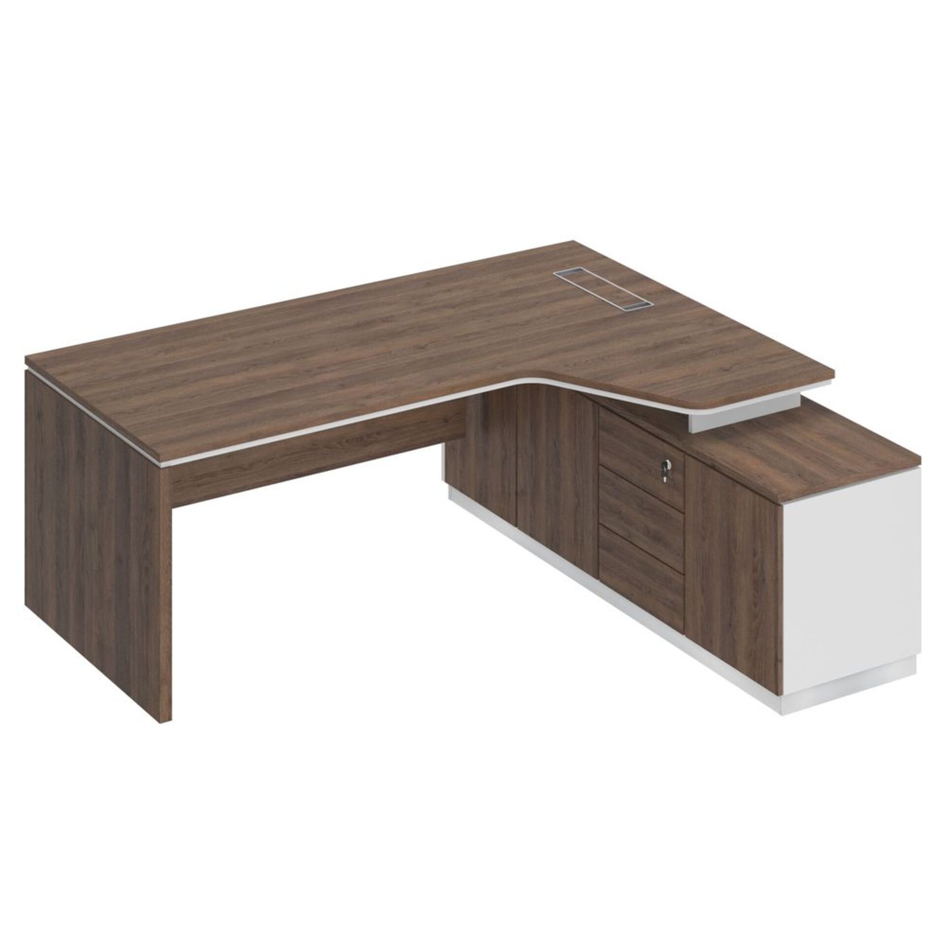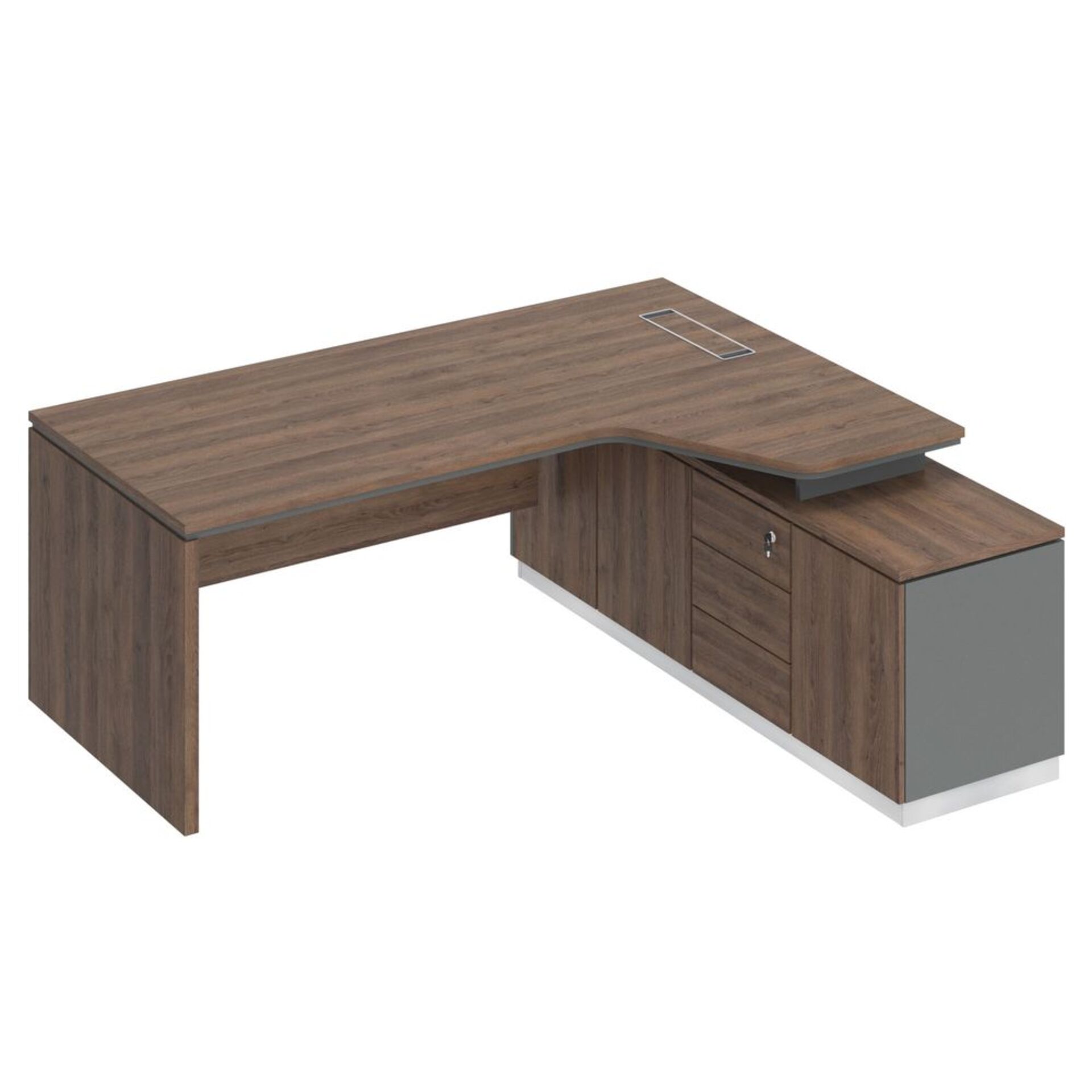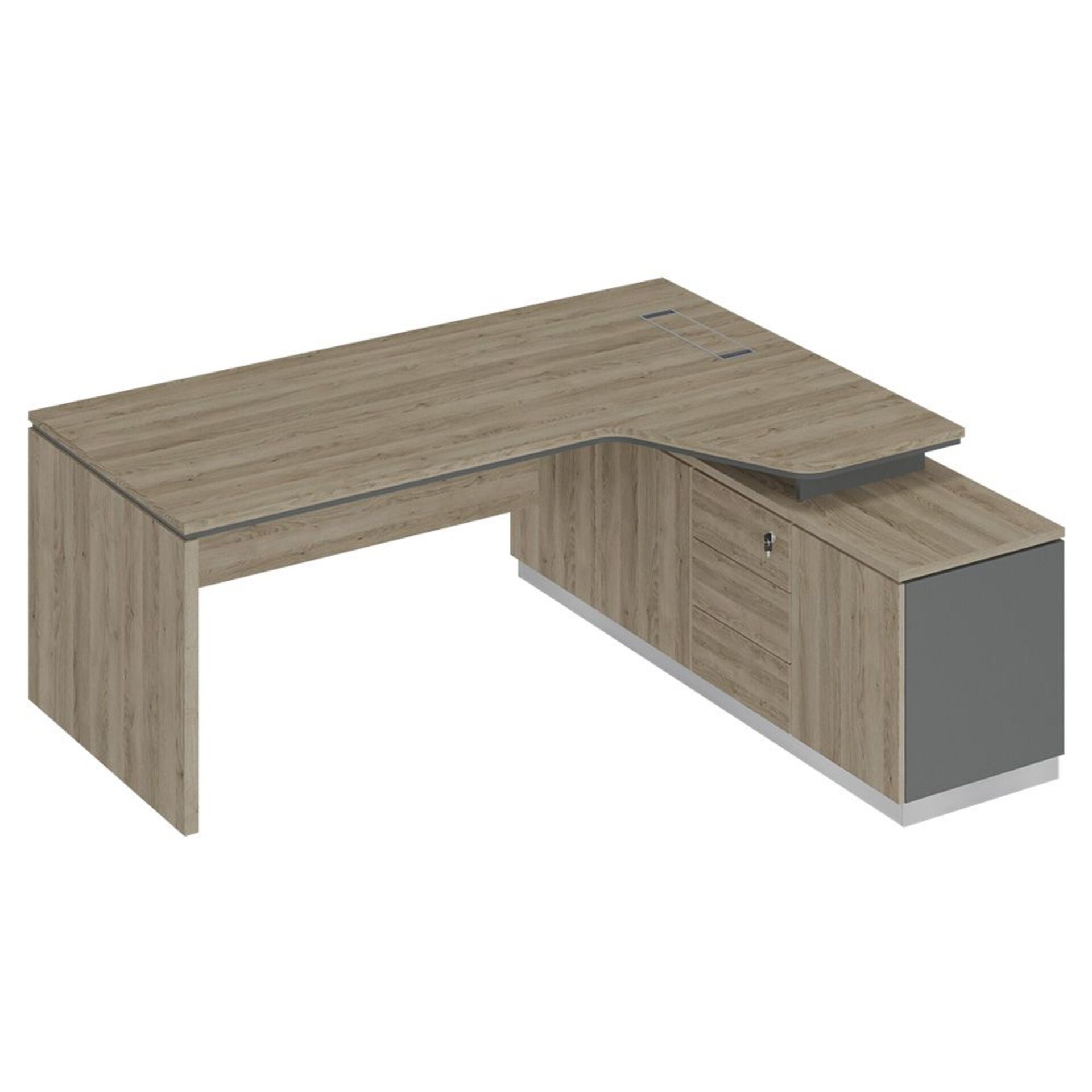 Стол рабочий на опорной угловой тумбе, с ящиками (метабокс), с замком 15СОУ.1608