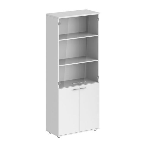 Шкаф высокий, 4-х дв., со стеклом, з.ст HDF SG.801.WH.WH.GL