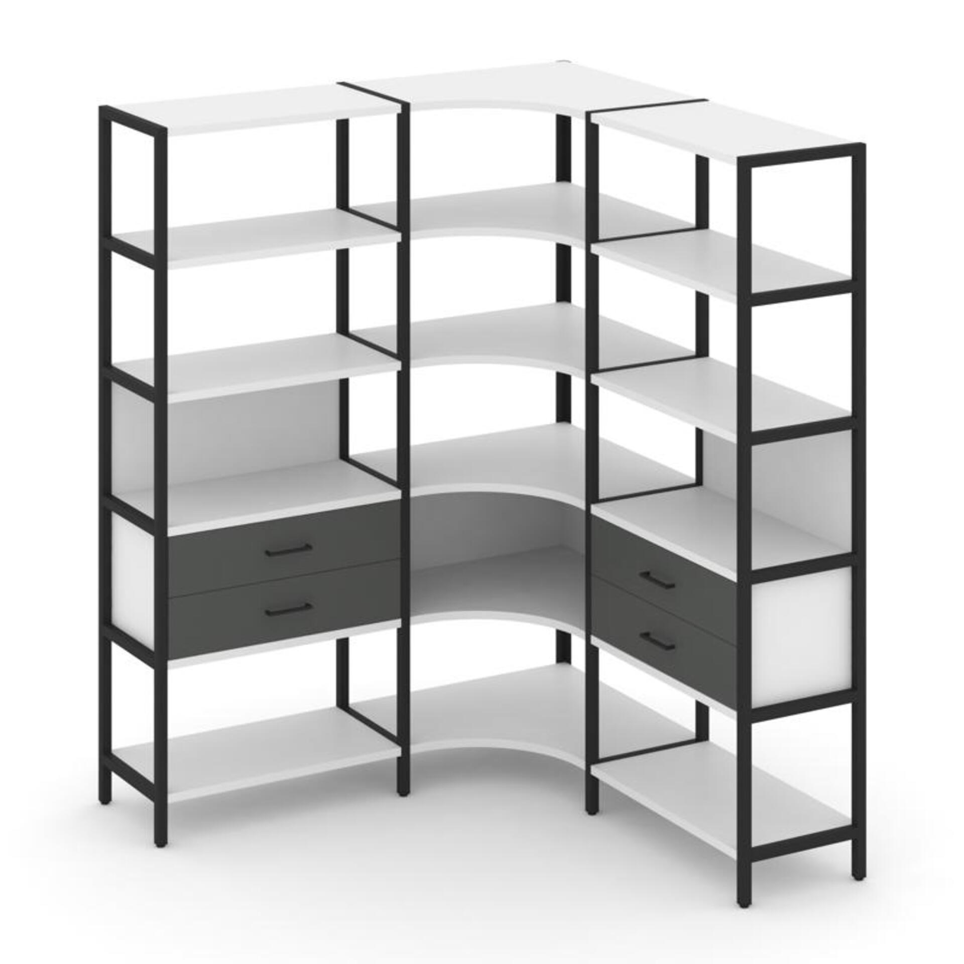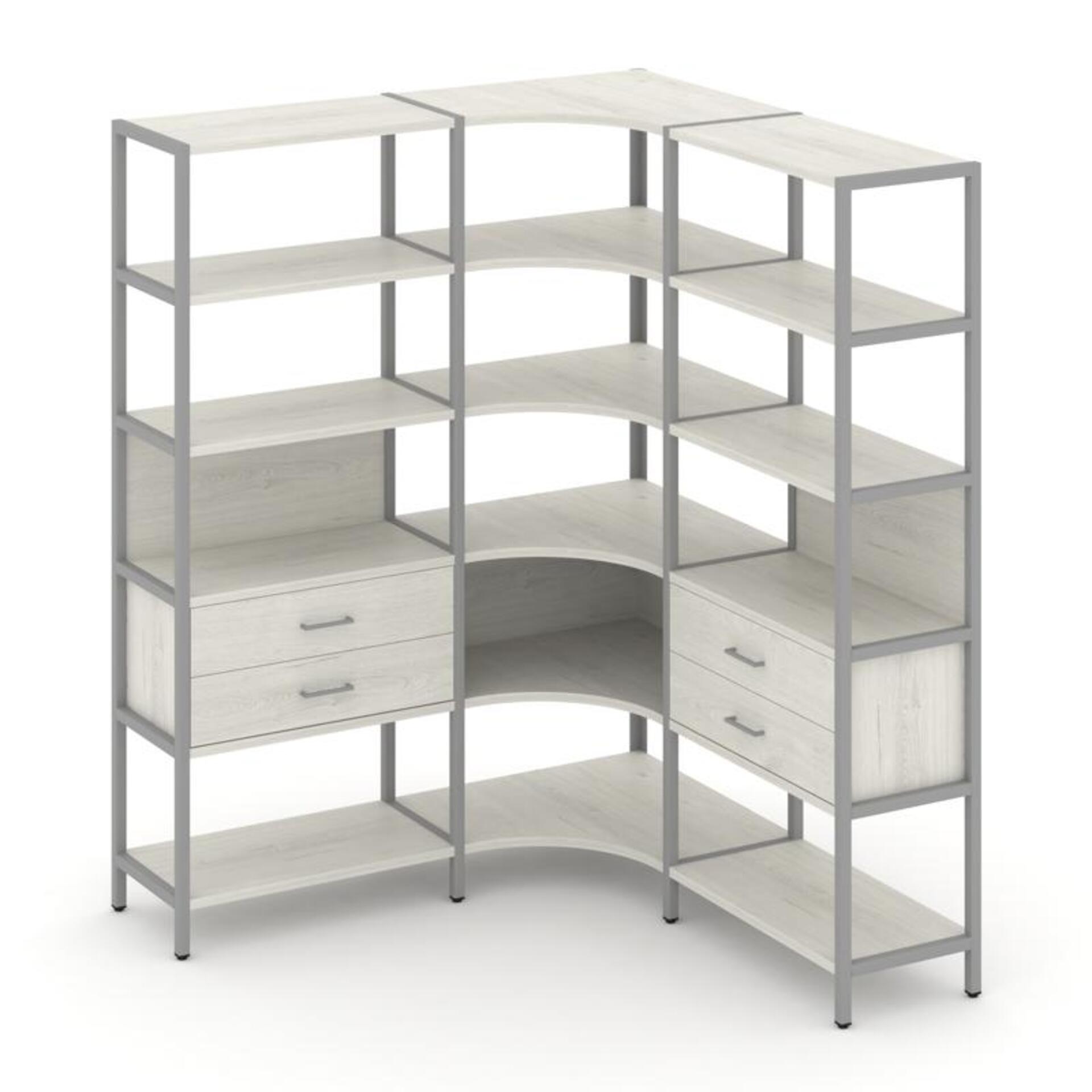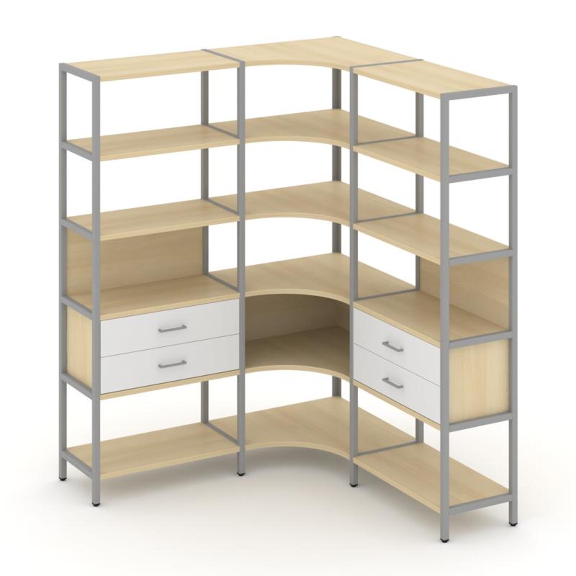 Трехсекционный угловой стеллаж пятиярусный с ящиками SN.STMU-531