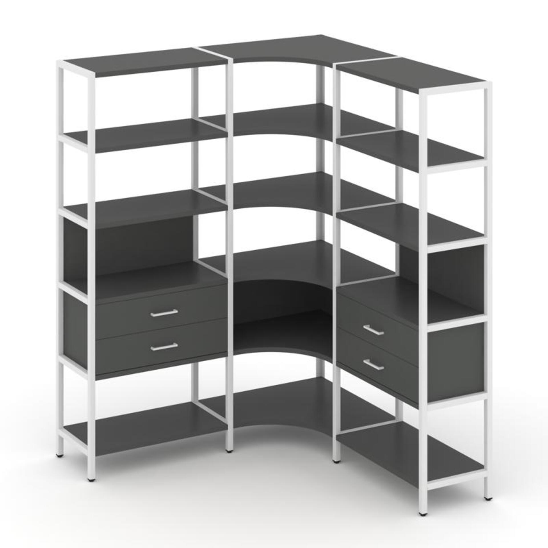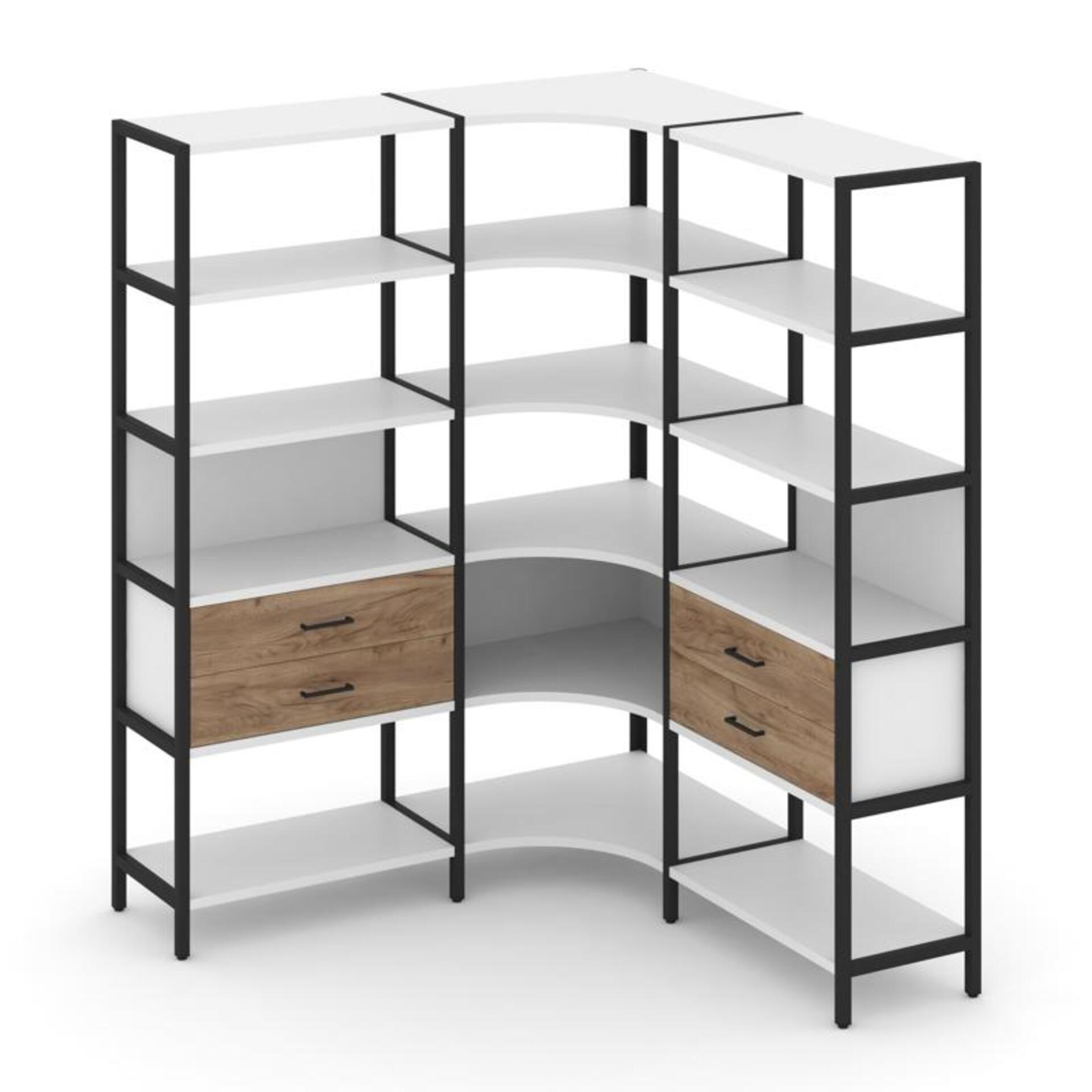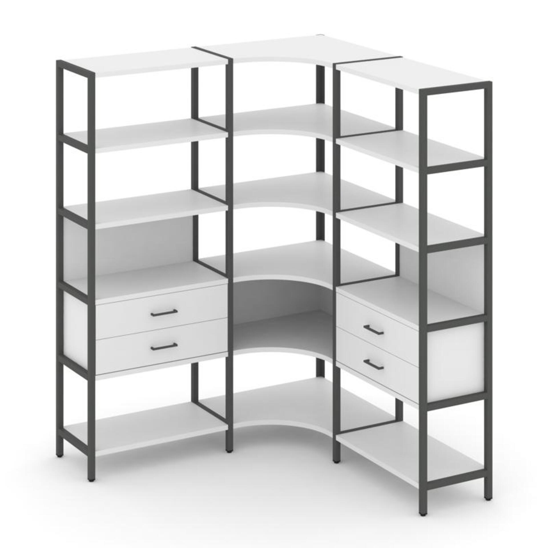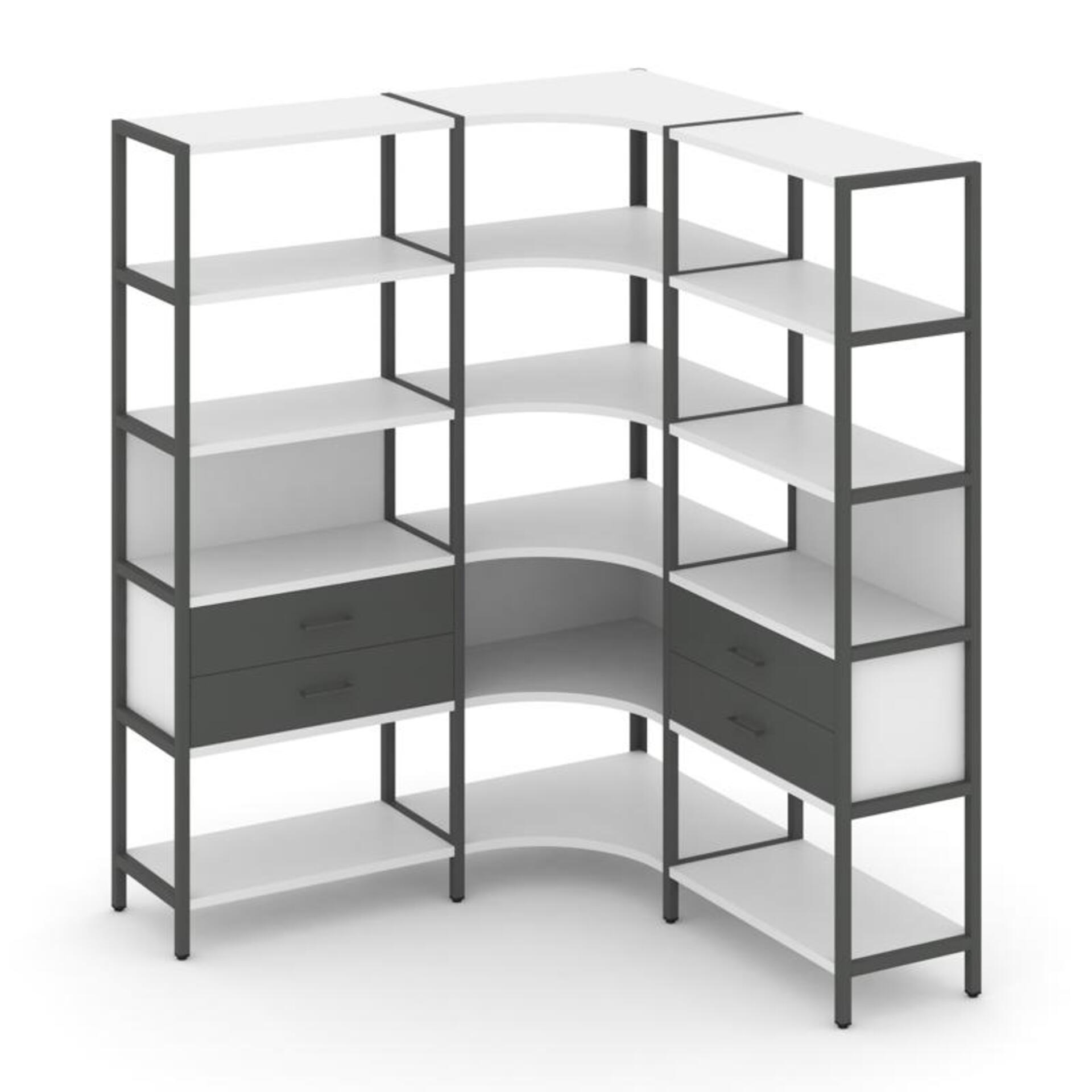 Трехсекционный угловой стеллаж пятиярусный с ящиками SN.STMU-531