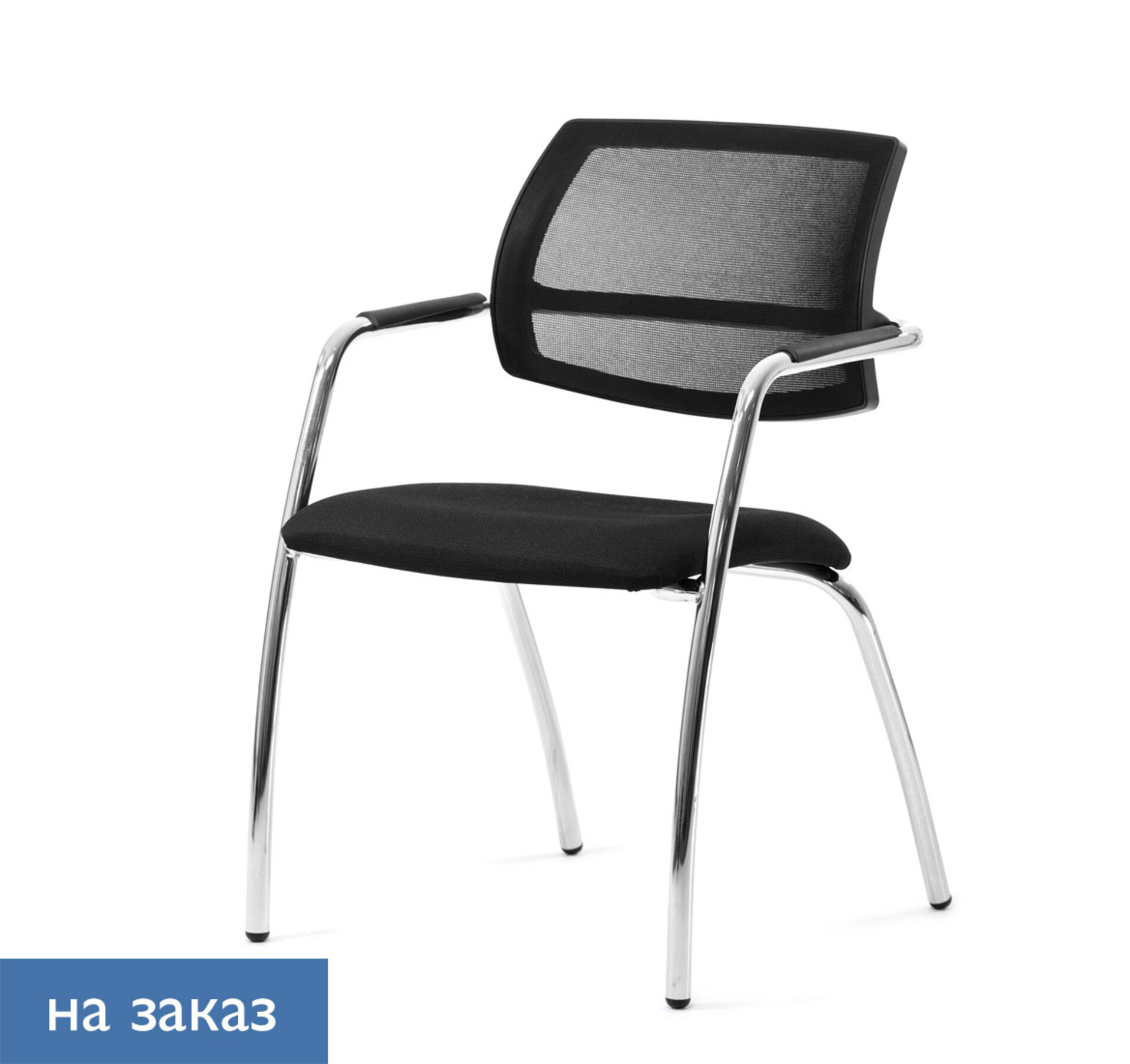 URBAN-MESH Кресло 4 опоры,кожа ЧЕРНЫЙ/ХРОМ Urban Mesh 4legs Dakota black